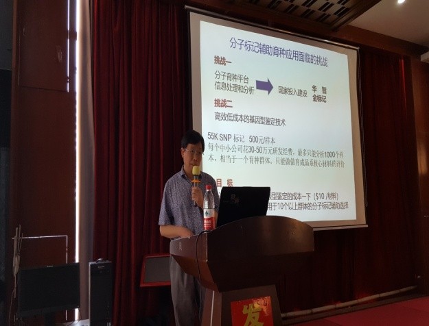 會(huì)議首先由中國科學(xué)院東北地理與農(nóng)業(yè)生態(tài)研究所武海濤副處長致辭并傳達(dá)所領(lǐng)導(dǎo)對大會(huì)的大力支持及充分肯定九所聯(lián)盟所取得的豐碩成果。農(nóng)業(yè)部科技發(fā)展中心鄧超博士向育種單位詳細(xì)介紹了當(dāng)前我國品種審定相關(guān)流程,包括品種特異性、一致性、穩(wěn)定性的測試方案,申請審定品種DUS測試流程及其他所需項(xiàng)目。王天宇研究員對國家良種重大科研協(xié)作攻關(guān)項(xiàng)目概況和進(jìn)展做了詳細(xì)的匯報(bào),指出該項(xiàng)目旨在進(jìn)行發(fā)掘優(yōu)異種質(zhì)與自交系創(chuàng)新,優(yōu)異雜交組合配制與篩選,苗頭品種測試與競賽和人才培養(yǎng)與信息化交流,最終提升研發(fā)競爭力,產(chǎn)出高效品種,推動(dòng)我國玉米產(chǎn)業(yè)供給側(cè)改革。徐云碧研究員對分子標(biāo)記輔助育種的相關(guān)理論與應(yīng)用技術(shù)進(jìn)行了整體總結(jié),包括基因捕獲技術(shù)、靶向測序與分子標(biāo)記開發(fā),并介紹了最新研發(fā)的玉米20K SNP芯片,在保證檢出SNP準(zhǔn)確性前提下能夠極大降低分子育種成本。謝傳曉研究員對玉米基因編輯技術(shù)及其雙單倍體育種技術(shù)應(yīng)用最新進(jìn)展向大家進(jìn)行了匯報(bào),指出運(yùn)用最新的CRISPR/Cas9基因編輯平臺(tái)并結(jié)合雙單倍體技術(shù)對進(jìn)行高效轉(zhuǎn)化,從而為玉米育種提供了更好的科研技術(shù)平臺(tái)。徐明良教授在玉米抗莖腐病QTL基因克隆及抗病機(jī)理方面進(jìn)行全面闡述,為育種家提供了更加優(yōu)良的玉米抗病材料。中國農(nóng)業(yè)大學(xué)王喜慶教授團(tuán)隊(duì)建立了玉米功能基因組平臺(tái),該平臺(tái)整合了中國農(nóng)業(yè)大學(xué)在生物技術(shù)、玉米遺傳育種、作物栽培與管理、植物營養(yǎng)等方面的優(yōu)勢力量,研究興趣涉及玉米的各種方向,并詳細(xì)介紹了智能化的高通量性狀分析技術(shù)。田清震博士具有多年育種經(jīng)驗(yàn),從育種的多個(gè)層面進(jìn)行解析,總結(jié)出育種幾個(gè)重點(diǎn)注意事項(xiàng)分別為:保持平衡多樣性與先進(jìn)性;保持雜優(yōu)模式,持續(xù)循環(huán)改良;保持相對穩(wěn)定規(guī)模和選擇強(qiáng)度,平衡基礎(chǔ)群體數(shù)目與大小;廣泛地測試,獲得科學(xué)的數(shù)據(jù);通過南繁、DH、分子手段一切手段加快育種進(jìn)程。各專家從分子育種、單倍體育種、工業(yè)化育種以及與傳統(tǒng)育種結(jié)合等多層面多角度對玉米育種研發(fā)各個(gè)環(huán)節(jié)深入剖析。另外,中國玉米各個(gè)種植區(qū)域(東北地區(qū)、黃淮海地區(qū)、西北地區(qū)和西南地區(qū))的資深專家也對中國玉米各種植區(qū)域的育種經(jīng)驗(yàn)進(jìn)行分享與深入交流。最后,中科玉九所聯(lián)盟對2017年整體工作進(jìn)行梳理回顧,充分肯定聯(lián)盟各項(xiàng)工作取得的成績,并對存在不足提出完善建議,同時(shí)對來年工作進(jìn)行部署展望。