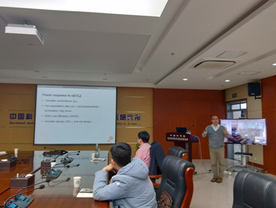 劉福來(lái)以“CO2 elevation modulates leaf gas exchange response to drought in C3 and C4 monocots and dicots species” 為題,通過(guò)兩個(gè)科學(xué)問(wèn)題的提出與破解為主線,在試驗(yàn)設(shè)計(jì)、試驗(yàn)方法方面進(jìn)行了深入講解,向現(xiàn)場(chǎng)的科研人員和研究生介紹自己最新的研究成果,并且與現(xiàn)場(chǎng)的科研人員進(jìn)行了熱烈的交流和討論,使到場(chǎng)參加本次講座的科研人員和研究生受益匪淺。
