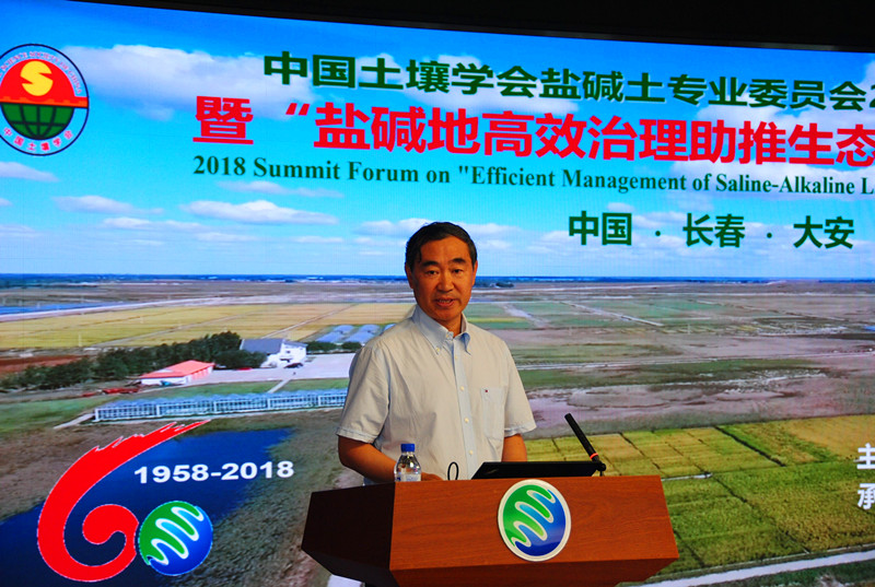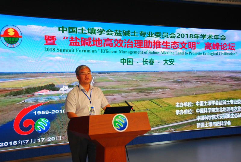 2018年7月17-20日, 由中國(guó)土壤學(xué)會(huì)鹽堿土專(zhuān)業(yè)委員會(huì)主辦,中國(guó)科學(xué)院東北地理與農(nóng)業(yè)生態(tài)研究所,中國(guó)科學(xué)院大安堿地生態(tài)試驗(yàn)站,新疆土壤與肥料學(xué)會(huì)承辦的中國(guó)土壤學(xué)會(huì)鹽堿土專(zhuān)業(yè)委員2018年學(xué)術(shù)年會(huì)暨“鹽堿地高效治理助推生態(tài)文明”高峰論壇分別在吉林省長(zhǎng)春市和大安市隆重舉行。來(lái)自國(guó)內(nèi)外22所大學(xué)、72個(gè)科研院所相關(guān)領(lǐng)域的院士、知名專(zhuān)家、學(xué)者以及25家相關(guān)企業(yè)等與會(huì)代表約400余人參加了大會(huì)。