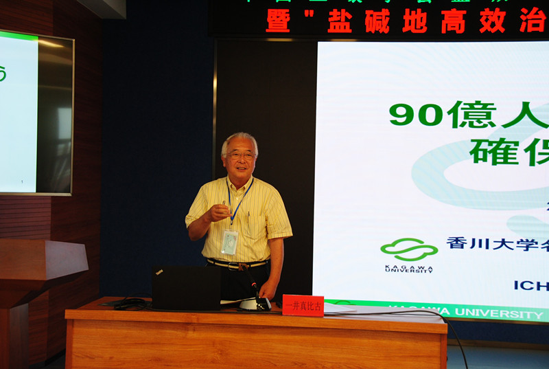18日上午,論壇開(kāi)幕式結(jié)束后,傅廷棟院士、尹偉倫院士、林鴻宣院士和陳學(xué)庚院士結(jié)合自身的研究領(lǐng)域、研究方向及取得的科研成果,分別就“鹽堿地種植飼料(綠肥)油料的研究與示范”、“植物耐旱、耐鹽能力的定量評(píng)價(jià)技術(shù)”、“水稻耐鹽性狀的遺傳調(diào)控機(jī)理”和“新疆兵團(tuán)現(xiàn)代農(nóng)業(yè)發(fā)展與展望”做了精彩的特邀學(xué)術(shù)報(bào)告。兩位特邀外國(guó)專(zhuān)家一井眞比古教授和Tibor Tóth研究員也分別以“如何確保未來(lái)90億人口的糧食?”和“Improvement of salt-affected soils in the 21st century”為題做了精彩的大會(huì)報(bào)告。