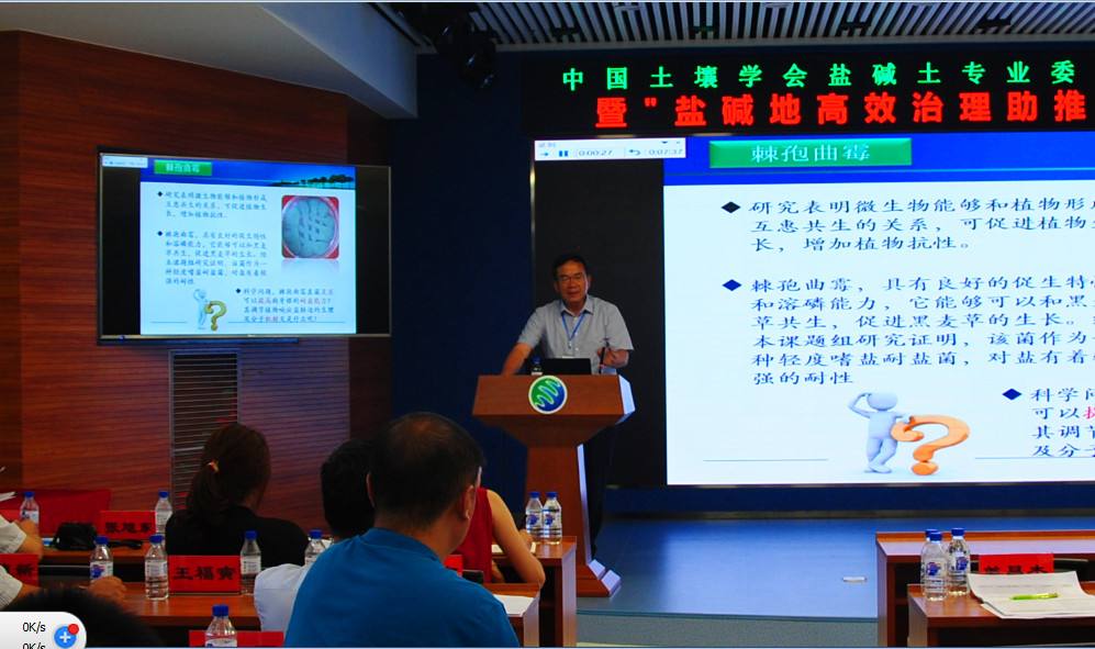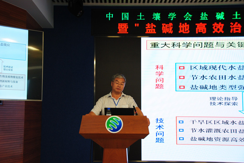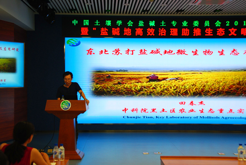 18日下午,來(lái)自國(guó)內(nèi)的13位從事鹽堿地研究工作的知名專(zhuān)家做了特邀專(zhuān)題報(bào)告。中國(guó)科學(xué)院新疆生態(tài)與地理研究所田長(zhǎng)彥研究員,中國(guó)科學(xué)院南京土壤研究所楊勁松研究員,中國(guó)科學(xué)院遺傳與發(fā)育生物學(xué)研究所劉小京研究員,中國(guó)科學(xué)院地理科學(xué)與資源研究所康躍虎研究員,清華大學(xué)能源與動(dòng)力工程系王淑娟教授,西北工業(yè)大學(xué)應(yīng)用化學(xué)系寧榮昌教授,中南大學(xué)薛生國(guó)教授,中國(guó)農(nóng)業(yè)科學(xué)院農(nóng)業(yè)資源與農(nóng)業(yè)區(qū)劃研究所程憲國(guó)研究員、魯東大學(xué)資源與環(huán)境工程學(xué)院傅金民教授,以及中國(guó)科學(xué)院東北地理與農(nóng)業(yè)生態(tài)研究所王志春研究員、趙凱研究員、田春杰研究員和梁正偉研究員等圍繞我國(guó)西北新疆鹽堿地、河套平原鹽堿地、濱海灘涂鹽堿地及中低產(chǎn)田,東北松嫩平原鹽堿地治理研究進(jìn)展與系統(tǒng)解決方案,以及微波遙感、土壤微生物、生物刺激素等新方法、新技術(shù)、新產(chǎn)品在鹽堿地治理上的應(yīng)用等分別做了專(zhuān)題學(xué)術(shù)報(bào)告。