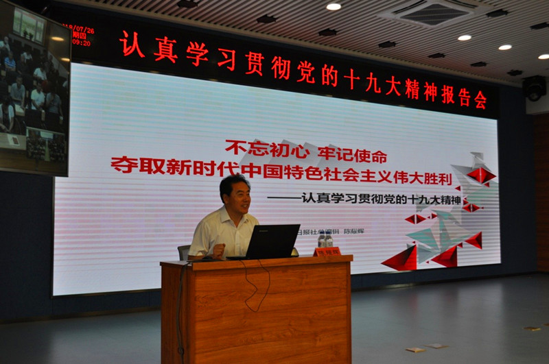 7月26日下午,為把學習宣傳貫徹黨的十九大精神不斷引向深入,東北地理所召開學習十九大精神專題報告會(哈區視頻),大會邀請黨的十九大精神吉林省委宣講團成員、吉林日報社總編輯陳耀輝做專題報告,全所190余位黨員和職工參加報告會。