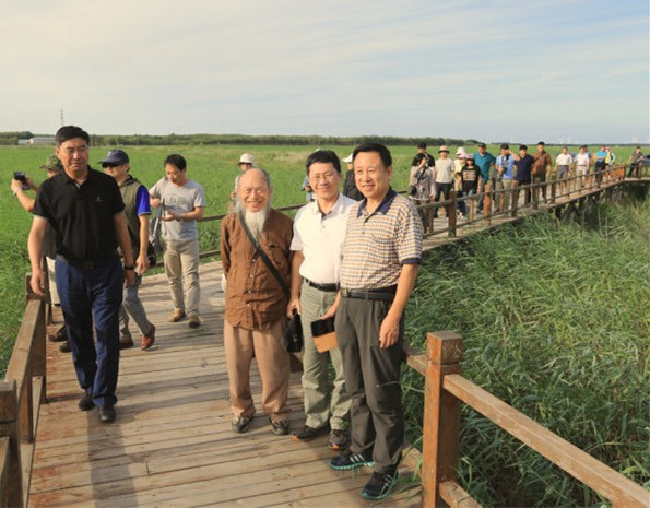 8月20日,美國北達科他大學的wetlands 主編Marinus Otte教授、澳大利亞埃迪斯科文大學的孫廣智教授、伊朗德黑蘭大學Ahmad Mahdavi教授、羅馬尼亞多瑙河三角洲國家研究所Marian Tudor和Iuliana-Mihaela Tudor、拉姆薩爾公約組織-東亞區(qū)執(zhí)行董事Seung Oh Suh等,以及中國科學院南京地理與湖泊研究所、中國科學院煙臺海岸帶研究所、中國科學院沈陽應用生態(tài)研究所、上海大學、北京林業(yè)大學、云南大學、河北大學等國內(nèi)外機構的專家學者、研究生一行50余人,在中科院東北地理與農(nóng)業(yè)生態(tài)研究所科研處武海濤研究員等陪同下,到西部鹽堿濕地站考察。
