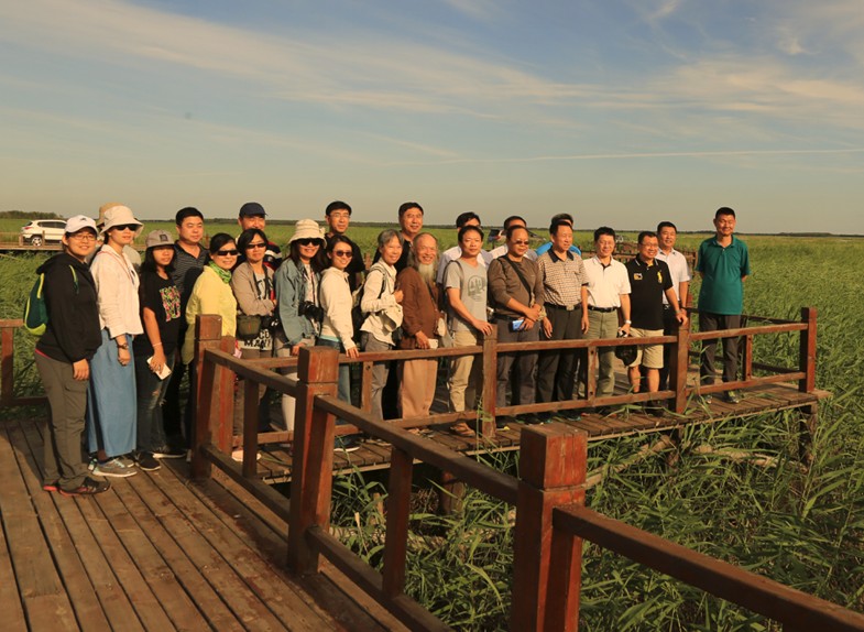 在東北地理所建所60周年之際,濕地與生態(tài)文明國際學術研討會暨第二屆亞洲濕地大會、第三屆中國濕地論壇在長春所區(qū)召開期間,來自國內(nèi)外的專家學者到我所濕地觀測研究網(wǎng)絡臺站松嫩平原西部鹽堿濕地生態(tài)研究站進行了野外考察和交流。2018年8月16日,中國濕地保護協(xié)會劉亞文副會長、臺灣濕地保護協(xié)會林幸助會長、吉林省濕地保護協(xié)會李英俊會長、國際濕地科學家學會(SWS)亞洲分會主席方偉達教授以及臺灣大學、臺灣清華大學、臺灣師范大學、臺灣中興大學、臺灣研究院、臺灣中山大學等15名專家、學者,在大安市于嘯洋副市長和牛心套保國家濕地公園管理中心劉茂林主任等陪同下考察了西部鹽堿濕地站。
