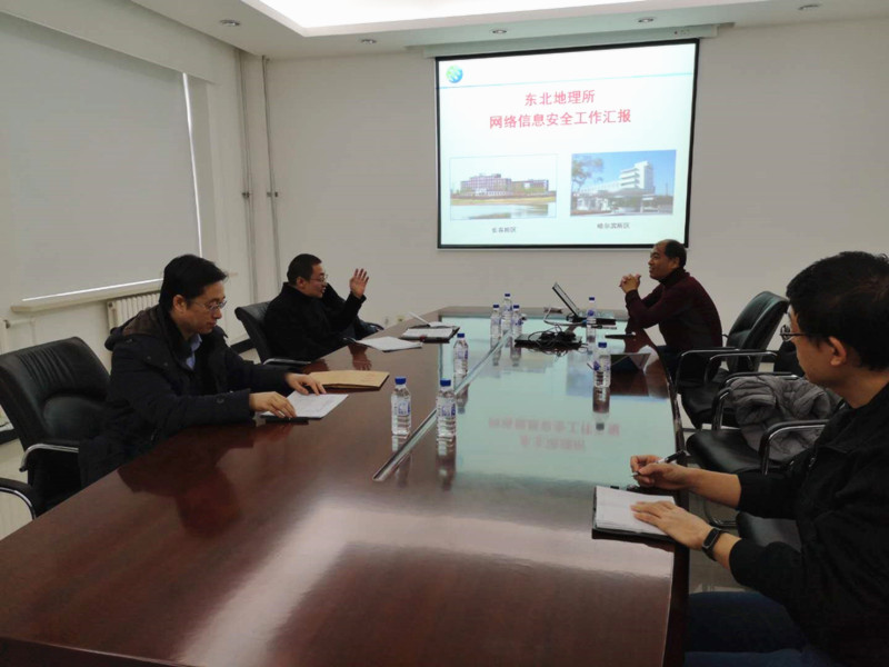 2019年1月25日,由長春分院科技合作處處長侯鵬、科技網長春分中心主任孟凡一組成的網絡安全檢查小組到東北地理所檢查網絡安全工作。信息中心副主任張慶平匯報了我所網絡安全工作的開展情況,對目前研究所網絡安全人員組成、規(guī)章制度建設情況、網絡安全硬件、軟件運行狀態(tài)以及研究所運行中的信息系統(tǒng)和網站進行了詳細匯報。