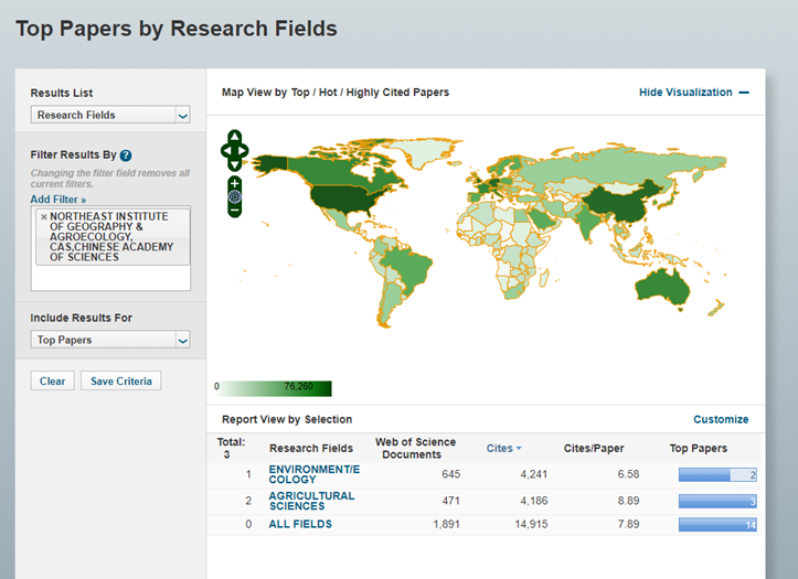 東北地理所“農業(yè)科學”和“環(huán)境科學與生態(tài)學”2個學科進入ESI全球前1%行列