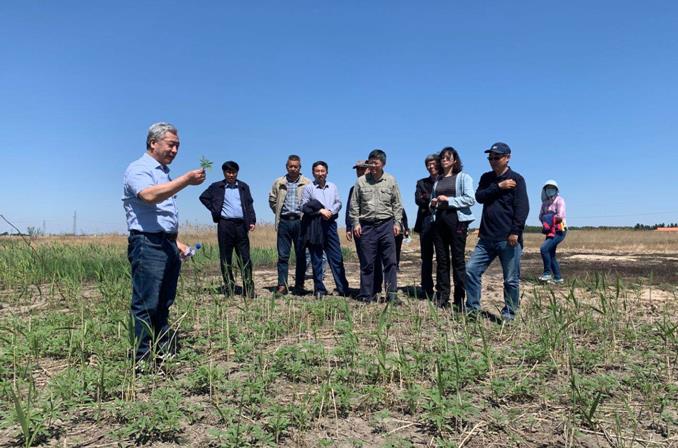 5月27日上午,調(diào)研組來到大安堿地生態(tài)試驗站,重點調(diào)研了國家重點研發(fā)計劃項目實施進(jìn)展情況和鹽堿退化草地生產(chǎn)力提升萬畝示范區(qū)。梁正偉研究員等科研人員詳細(xì)匯報了大安站科研監(jiān)測、平臺建設(shè)和成果產(chǎn)出情況,并實地介紹了耐鹽堿植物篩選、耐鹽堿水稻雜交育種、蘇打鹽堿地改良劑“脫堿3號”、 鹽堿地植被恢復(fù)與水肥高效調(diào)控的研發(fā)與應(yīng)用情況。考察組還參觀了吉林省直屬機(jī)關(guān)工會工作委員會設(shè)立的梁正偉 “勞模創(chuàng)新工作室”,高度評價了近10年來大安站主持實施了國家項目3項,獲得國家科技進(jìn)步二等獎2項等豐碩成果。
