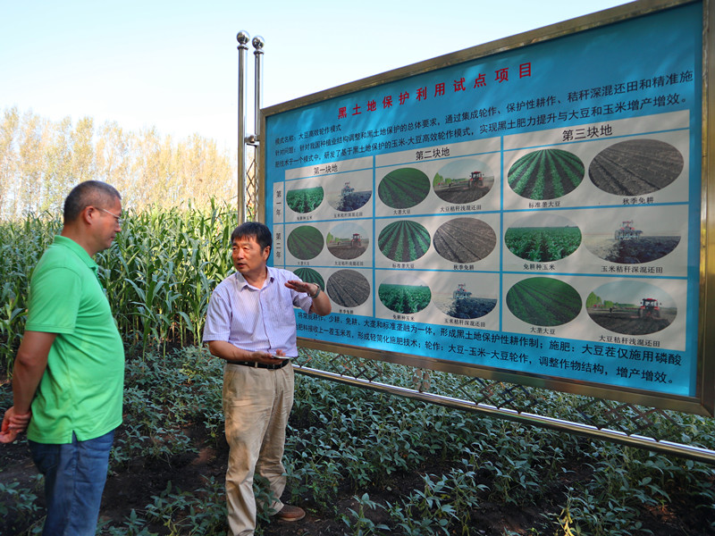 在海倫農業生態實驗站,韓曉增匯報了海倫站的建站歷史、多年來取得的業績和人才培養等情況,特別匯報了站內設置長期定位試驗的目的、獲得的研究成果以及在國家農業科技需求中的重要貢獻等。周桔還實地了解了海倫市勝利村的農業示范區內的黑土保護和輪作休耕等技術模式的應用情況,此技術理論是基于海倫站長期定位試驗凝練出來的。大豆育種專家李艷華重點匯報了我所培育的東生系列大豆品種的特點、成果轉化和推廣應用情況。