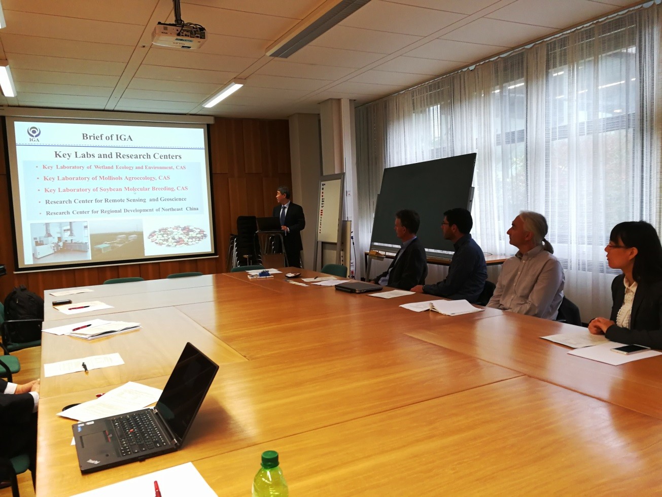 9月21日,代表團一行訪問了哥廷根大學林業科學學院,院長EdzoVeldkamp教授對我所代表團來訪表示了熱烈歡迎。何興元所長在座談會上做了關于“Research Program in IGA, CAS: An Overview”的報告,介紹了我所概況、學科領域、研究平臺及對外合作交流情況。林學院Kerstin Wiegand教授、Oliver Gailing教授、HolgerKreft教授、Peter Annigh?fer博士分別作了專題報告,雙方針對相關研究內容進行了廣泛而深入的探討。德方科學家對我所的研究平臺及研究內容非常感興趣;在開展有關研究領域、人才交流、項目申請、野外平臺建設等方面達成共識,計劃近期簽署科技合作協議。