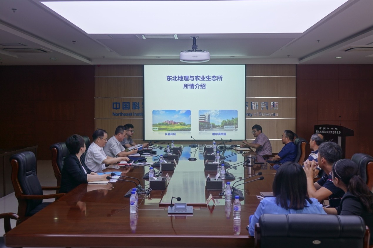 何興元首先代表研究所對(duì)李博一行表示熱烈歡迎, 并簡(jiǎn)要介紹了東北地理所在東北林區(qū)山水林田湖生態(tài)恢復(fù)關(guān)鍵技術(shù)集成與示范方面的科技成果情況。武海濤詳細(xì)介紹了研究所“十三五”發(fā)展情況,并分別對(duì)研究所農(nóng)業(yè)領(lǐng)域、濕地生態(tài)領(lǐng)域及遙感與區(qū)域發(fā)展領(lǐng)域科技成果做了重點(diǎn)介紹。宋開(kāi)山從資源調(diào)查、參數(shù)反演、林地類(lèi)型監(jiān)測(cè)以及蟲(chóng)害監(jiān)測(cè)等方面介紹了森林生態(tài)資源遙感監(jiān)測(cè)技術(shù)的應(yīng)用。趙恒田介紹了多個(gè)林下經(jīng)濟(jì)作物優(yōu)勢(shì)品種,并表示在禁伐的背景下,大力發(fā)展林下經(jīng)濟(jì)對(duì)提高經(jīng)濟(jì)效益是十分必要的,同時(shí)希望研究所的優(yōu)勢(shì)品種能夠得到推廣和轉(zhuǎn)化,并建議雙方在山水林田湖方面的科技成果、森林遙感監(jiān)測(cè)技術(shù)應(yīng)用和林下經(jīng)濟(jì)作物品種開(kāi)發(fā)方面盡快開(kāi)展實(shí)地調(diào)研,確定合作方向。