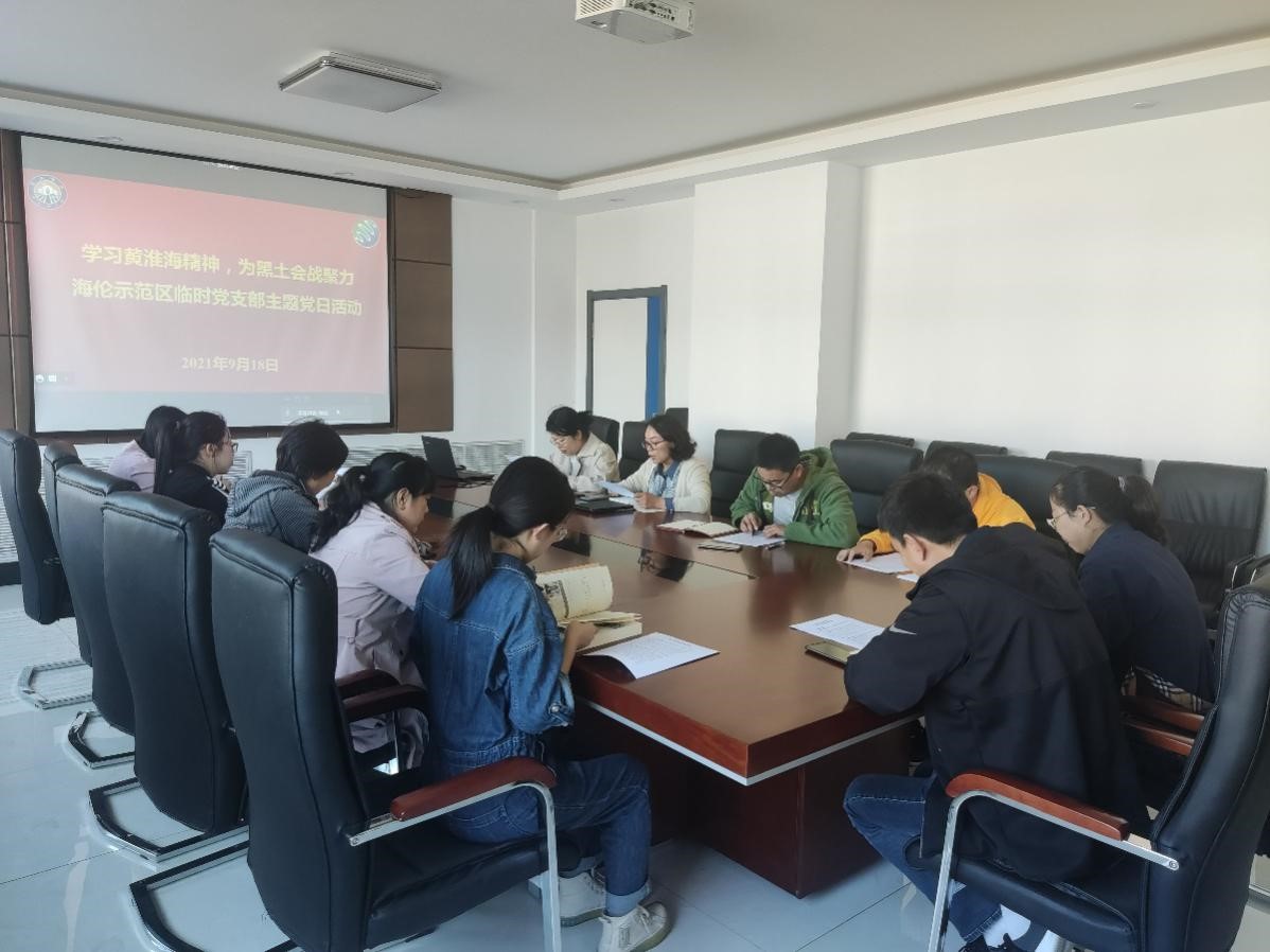 2021年9月18日,“黑土糧倉”科技會戰海倫示范區臨時黨支部開展了以“學習黃淮海精神,為黑土會戰聚力”為主題的黨日活動,支部全體黨員參加了此次活動。