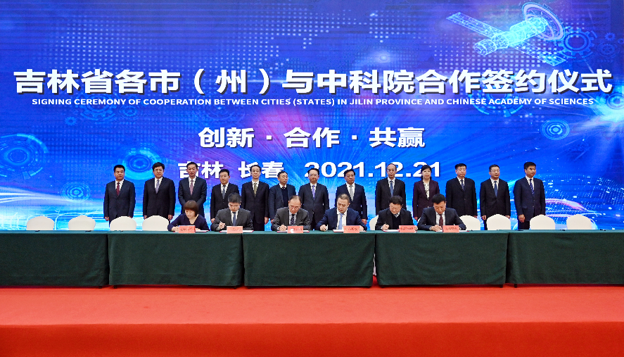 2021年12月21日,吉林省各市(州)與中科院合作簽約活動在長春舉行。省委書記景俊海出席并講話,省長韓俊主持儀式。東北地理所所長姜明、黨委書記蘇陽、副所長李秀軍出席,姜明代表研究所與各市(州)及企業(yè)簽約。
