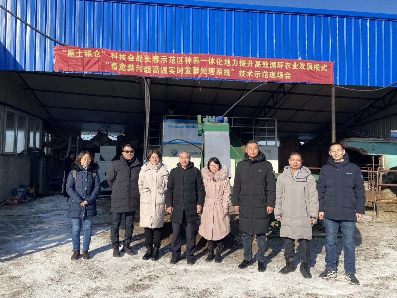 2021年12月20日,“黑土糧倉”科技會戰長春示范區種養一體化地力提升高效循環農業發展模式“畜禽糞污超高溫發酵實時處理技術”示范現場會在公主嶺市嶺艷養殖場召開。吉林省畜牧業管理局副局長孫福余、公主嶺市副市長賈立輝、中國科學院東北地理所副所長李秀軍、梨樹縣統戰部部長王志清出席了現場會。