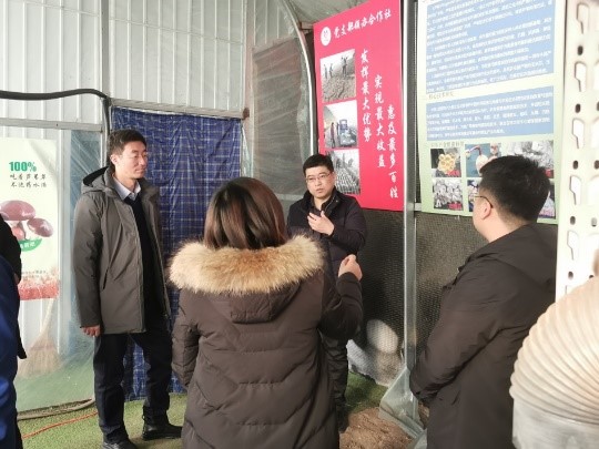 對接小組考察調(diào)研了太山鎮(zhèn)現(xiàn)代農(nóng)業(yè)產(chǎn)業(yè)園區(qū)-張家村種植合作社食用菌種植大棚和東風(fēng)村閑置房食用菌栽培示范點。孫劍寒表示,葦基食用菌栽培技術(shù)的引入對太山鎮(zhèn) “食在太山”、“以短養(yǎng)長”特色產(chǎn)業(yè)目標(biāo)的實現(xiàn)具有重要的推動作用,鮮美的葦基食用菌也受到地方百姓的認(rèn)可,并表示未來將積極加強與東北地理所的合作,協(xié)同促進地方生態(tài)產(chǎn)業(yè)和經(jīng)濟發(fā)展。隨后,李曉宇對葦基食用菌栽培技術(shù)的優(yōu)勢和當(dāng)前國內(nèi)外蘆葦?shù)馁Y源化利用方式做了具體介紹,蘆葦基質(zhì)化的技術(shù)應(yīng)用成為當(dāng)前國內(nèi)多個蘆葦產(chǎn)區(qū)主推的生態(tài)和經(jīng)濟發(fā)展并行的抓手,而且葦基食用菌菌糠可以培肥還田,提升地力。