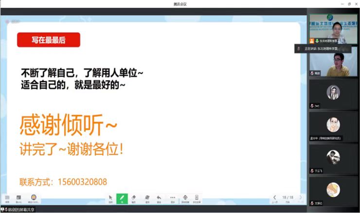 本次分享會,內(nèi)容扎實(shí)、豐富且全面,幫助同學(xué)們有針對性的了解了目前就業(yè)政策和形勢,有助于引導(dǎo)廣大研究生明確就業(yè)方向、做好學(xué)業(yè)規(guī)劃和求職準(zhǔn)備。最后,衷心的感謝三位校友對東北地理所研究生就業(yè)工作的支持以及對學(xué)弟、學(xué)妹的關(guān)心。