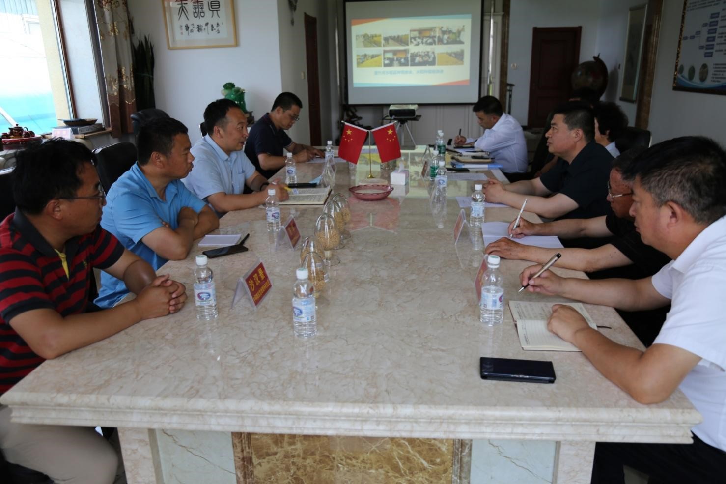 楊士鋒代表慶安縣縣委對東北地理所一行的到來表示熱烈歡迎,詳細介紹了慶安縣農業基本情況并指出慶安縣迫切需要通過選育優質、高產、抗逆水稻品種來提高水稻附加值。劉俊杰詳細介紹了東北地理所的主要學科領域、核心競爭力、承擔國家科技任務情況和實施進展。方軍研究員介紹了團隊在利用分子輔助選擇培育水稻新品種方面取得的階段性成果,展望了生物育種技術在未來的應用前景。李敏董事長介紹了雙方的合作基礎以及當前企業在水稻育種研發中遇到的困難,并表示將全力支持雙方的科研攻關合作項目。