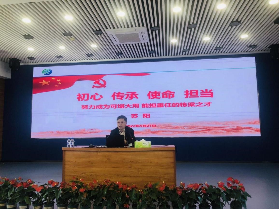 黨委書記蘇陽以“初心、傳承、使命、擔(dān)當(dāng),努力成為可堪大用,能擔(dān)重任的棟梁之才”為題,從歷史傳承、文化積淀,主動擔(dān)當(dāng)、奉獻(xiàn)青春,廣闊天地、大有作為,任重道遠(yuǎn)、砥礪前行等四個部分,與大家暢談當(dāng)代青年人作為國家戰(zhàn)略科技力量如何傳承老一輩科學(xué)家精神、踐行初心使命。蘇陽提出殷切希望,希望青年一代能夠刻苦努力,矢志不渝,牢記使命,繼承和發(fā)揚(yáng)黨的光榮傳統(tǒng),努力成為可堪大用,能擔(dān)重任的棟梁之才。