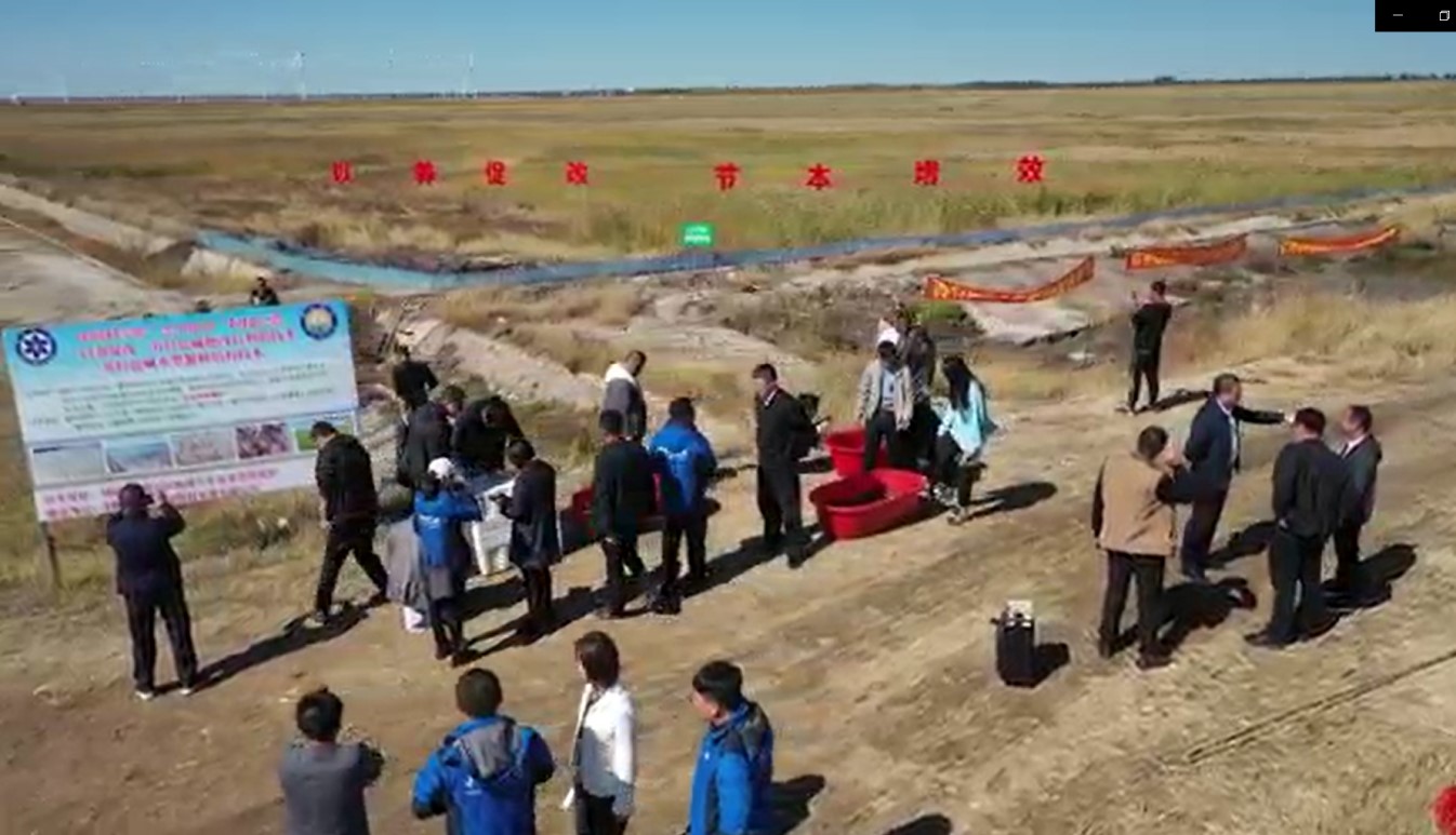 2022年9月24日,中國科學(xué)院戰(zhàn)略性先導(dǎo)科技專項(A類)鹽堿地生態(tài)治理與高效利用大安示范區(qū)模式四“鹽堿濕地資源利用與生態(tài)功能提升模式”在位于白城市鎮(zhèn)賚縣的建平基地召開了現(xiàn)場觀摩會。中國科學(xué)院東北地理與農(nóng)業(yè)生態(tài)研究所黨委書記蘇陽,白城市農(nóng)業(yè)農(nóng)村局局長范非、副局長于洪祥,鎮(zhèn)賚縣副縣長范立家、農(nóng)業(yè)農(nóng)村局副局長馮明,吉林農(nóng)業(yè)大學(xué)李月紅教授,吉林省水產(chǎn)科學(xué)研究院陳偉強副研究員,吉林省水產(chǎn)技術(shù)推廣總站李兆君高級工程師,白城市水產(chǎn)技術(shù)推廣站站長孫闖教授級高級工程師,中國科學(xué)院東北地理與農(nóng)業(yè)生態(tài)研究所辦公室副主任殷麗婭、黃迎新研究員等領(lǐng)導(dǎo)和專家應(yīng)邀參加了觀摩會。李月紅教授擔(dān)任現(xiàn)場測產(chǎn)專家組組長,黃迎新研究員擔(dān)任觀摩會主持人。