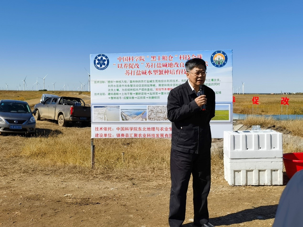 蘇陽介紹了“黑土糧倉”科技會戰(zhàn)作為深入貫徹習(xí)近平總書記“把黑土地用好養(yǎng)好”“端牢中國飯碗”重要指示精神、保障我國糧食安全與生態(tài)安全重要舉措的歷史使命,充分肯定了大安示范區(qū)扎根吉林省西部蘇打鹽堿地所取得的重要階段性進展以及對吉林省“千億斤糧食”工程的重要作用,對鹽堿濕地資源利用與生態(tài)功能提升模式科技人員積極創(chuàng)新、不斷探索、研發(fā)新技術(shù)的精神以及“小扣蟹、大產(chǎn)業(yè)”的進展給予了高度評價,鼓勵科技人員要繼續(xù)立足國民經(jīng)濟主戰(zhàn)場,勇于擔(dān)當、敢于創(chuàng)新;同時對白城市政府、鎮(zhèn)賚縣政府以及龍頭企業(yè)的大力支持和協(xié)作表示感謝。