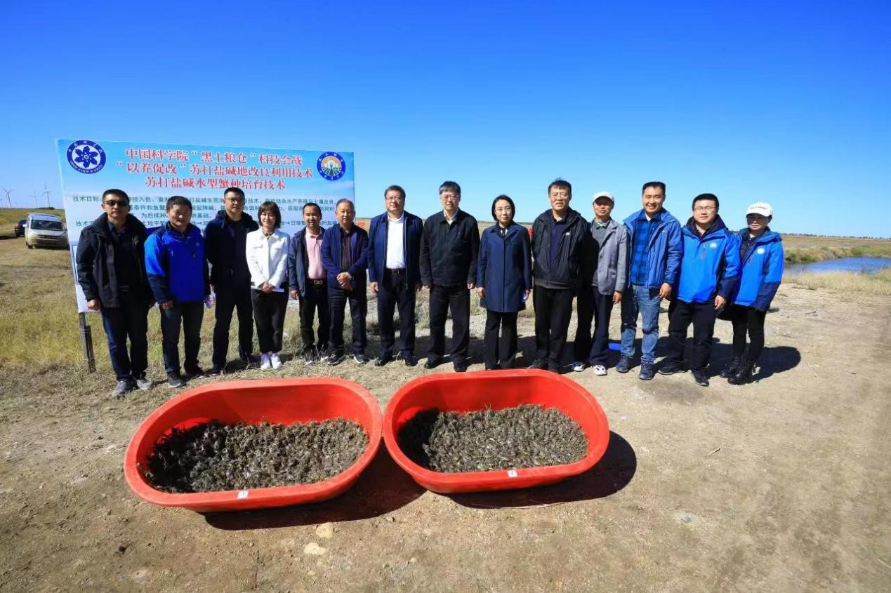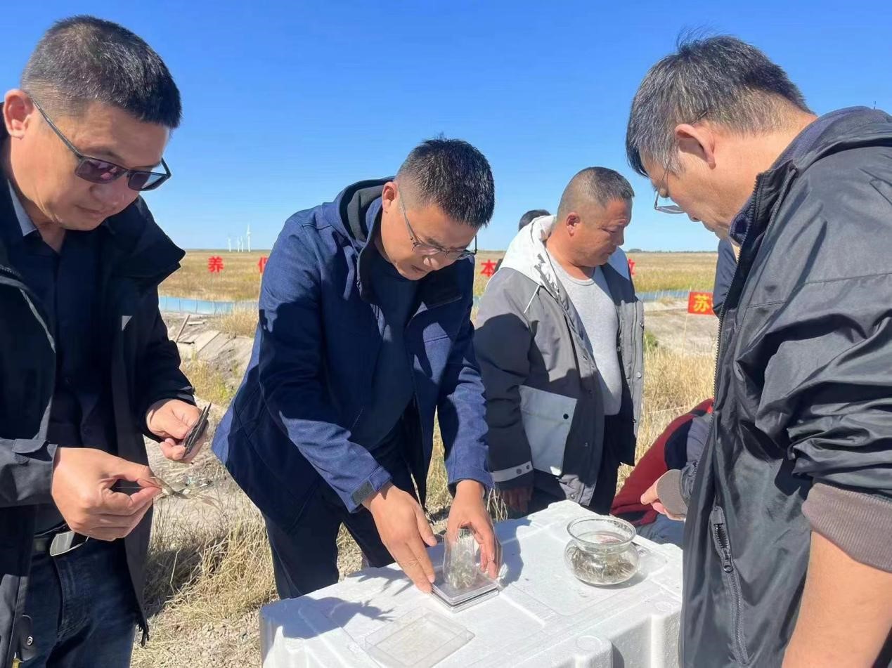 測產(chǎn)結(jié)果顯示,蟹種產(chǎn)量為77公斤/畝,規(guī)格140只/公斤,長勢良好、活力強、個頭整齊、底板干凈、肥度飽滿。專家組一致認為,蘇打鹽堿水型蟹種培育技術(shù)和“以養(yǎng)促改”蘇打鹽堿地改良利用技術(shù)效果顯著。