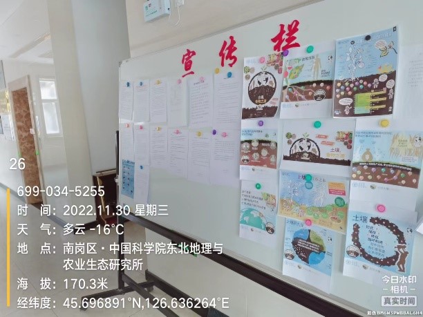 11月30日,土壤資源與利用學(xué)科組在哈爾濱所區(qū)宣傳欄張貼了世界土壤日官方宣傳海報(bào),海報(bào)展示了2022年世界土壤日主題、土壤肥力形成與提升、土壤肥力與人體健康等內(nèi)容,使哈爾濱所區(qū)職工和研究生對(duì)2022年世界土壤日有了更深的認(rèn)識(shí)。此外,土壤資源與利用學(xué)科組在12月1日至3日期間,在疫情防控允許的條件下,在所住小區(qū)也進(jìn)行了世界土壤日宣傳海報(bào)的張貼,并為公共講解世界土壤日的由來(lái)以及土壤在糧食生產(chǎn)的中的重要作用,促進(jìn)了公眾關(guān)注和保護(hù)土壤意識(shí)的提升。