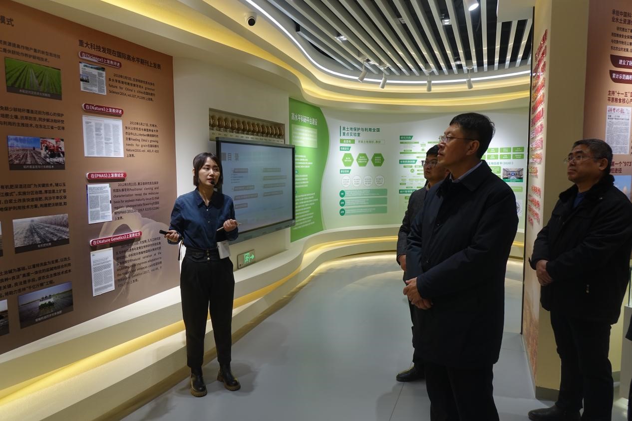 隨后參觀了“黑土糧倉(cāng)”科技會(huì)戰(zhàn)指揮中心宣傳展示平臺(tái),辦公室副主任殷麗婭對(duì)研究所歷史沿革、基本概況、科研項(xiàng)目、人才智庫(kù)、平臺(tái)建設(shè)、黨建創(chuàng)新等方面內(nèi)容進(jìn)行了講解。