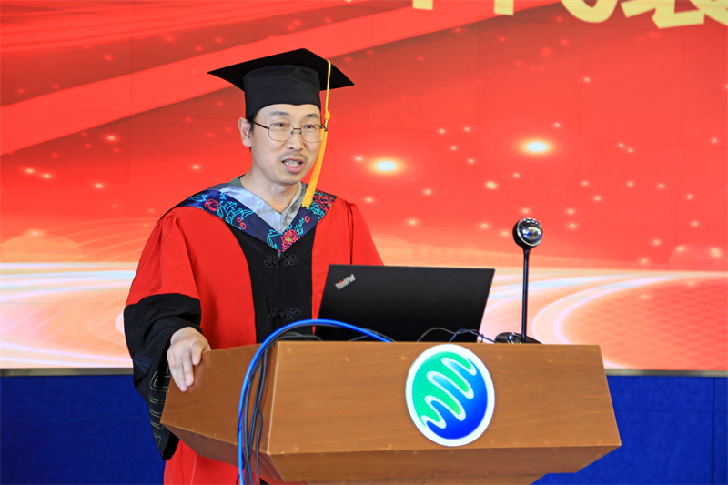 田春杰研究員代表研究生導(dǎo)師在畢業(yè)典禮上發(fā)言。他首先向各位畢業(yè)生同學(xué)表達(dá)了衷心的祝賀,希望畢業(yè)生們做新時(shí)代的筑夢(mèng)人和奮斗者。田春杰結(jié)合研究所近年的發(fā)展,深情回顧過去三年研究所全體職工和研究生風(fēng)雨兼程的難忘歲月,同時(shí)展望我們即將邁入的新的春天;他堅(jiān)信同學(xué)們有雄心萬丈征服世界的勇氣,也有遇到挫折重頭再來的決心。他的致辭如殷殷教導(dǎo),在臨別時(shí)仍舊囑咐同學(xué)們,要不斷發(fā)展自身的實(shí)力,要懂得珍惜和感恩。
