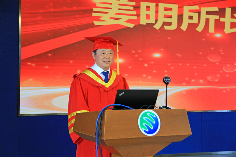 所學(xué)位委員會(huì)主席、所長(zhǎng)姜明在畢業(yè)典禮上致辭。他向圓滿完成學(xué)業(yè)的同學(xué)們表示誠摯的祝賀和良好的祝愿,向老師和家長(zhǎng)朋友們致以崇高的敬意和衷心的感謝,并以“志當(dāng)存高遠(yuǎn),敢為時(shí)代先”為主題,給同學(xué)們上了在東北地理所的最后一堂課。他強(qiáng)調(diào),畢業(yè)生要堅(jiān)定不移聽黨話、跟黨走,懷抱夢(mèng)想又腳踏實(shí)地,要自覺把個(gè)人前途命運(yùn)和國家的前途、民族的命運(yùn)緊密相連。他堅(jiān)信,受到“團(tuán)結(jié)、務(wù)實(shí)、開拓、發(fā)展”的東地精神滋養(yǎng)的東地學(xué)子一定會(huì)厚植家國情懷,練就興農(nóng)本領(lǐng),在鄉(xiāng)村振興的道路上貢獻(xiàn)自己的力量,東地學(xué)子定將敢為人先,勇于擔(dān)當(dāng)。最后,他對(duì)畢業(yè)生表達(dá)了殷切的期盼,表示畢業(yè)不是結(jié)束,是另一段人生的開啟,愿畢業(yè)生們能志存高遠(yuǎn),懷抱崇高理想,挺膺擔(dān)當(dāng),不負(fù)韶華,砥礪奮進(jìn),不負(fù)時(shí)代。