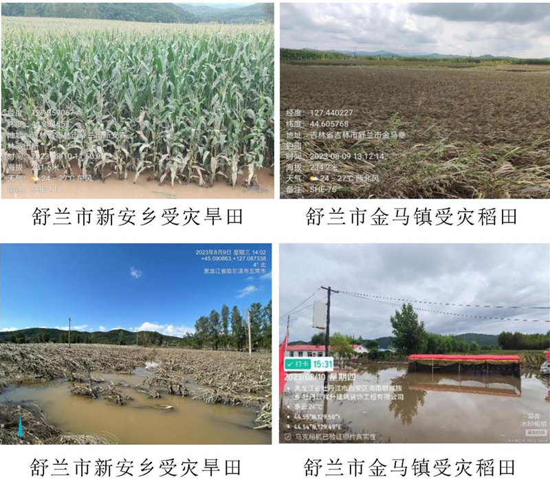 2023年8月份,受五號(hào)臺(tái)風(fēng)“杜蘇芮”和第6號(hào)臺(tái)風(fēng)“卡努”的影響,吉林省和黑龍江省迎來(lái)了持續(xù)強(qiáng)降雨,多地出現(xiàn)了洪澇災(zāi)害。其中受五號(hào)臺(tái)風(fēng)“杜蘇芮”的影響最為嚴(yán)重。黑龍江五常市迎來(lái)持續(xù)強(qiáng)降雨,拉林河流域發(fā)生50年一遇特大洪災(zāi),五常市民樂(lè)朝鮮族鄉(xiāng)、志廣鄉(xiāng)、衛(wèi)國(guó)鄉(xiāng)、龍鳳山鎮(zhèn)等18個(gè)鄉(xiāng)鎮(zhèn)不同程度受災(zāi);吉林省舒蘭市拉林河流域發(fā)生50年一遇特大洪災(zāi),舒蘭市金馬鎮(zhèn)、開(kāi)原鎮(zhèn),七里鄉(xiāng)等7個(gè)村鎮(zhèn)受災(zāi)嚴(yán)重;白城市大安市兩家子鎮(zhèn)附近受洪水侵蝕較為嚴(yán)重,多處道路房屋受損,玉米大面積倒伏受災(zāi),且仍有大面積積水存在,同興村,同勝村,三家子,四家子等兩家子鎮(zhèn)下屬村都受災(zāi)明顯。