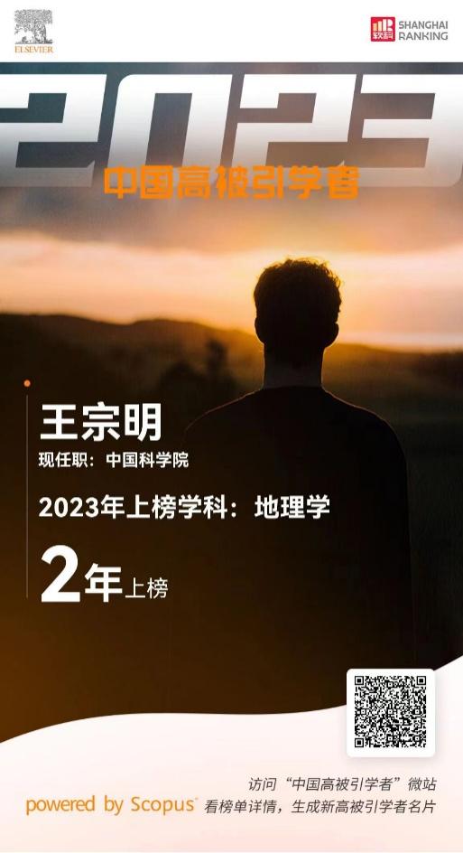王宗明研究員連續兩年入選Elsevier“中國高被引學者”榜單