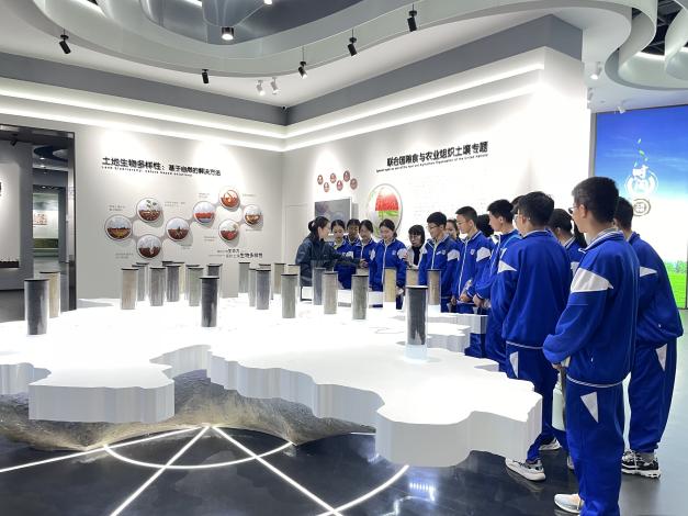 ????英才學校師生們在志愿者的引導和講解下,參觀了東北黑土地保護與利用創新研究院,認識了東北黑土區不同土壤類型分布以及不同土壤類型特性。在智慧農場實驗室,工作人員現場進行了精量滴灌等操作演示,學生們對現代化智慧農業產生了濃厚興趣,不斷進行觀察和記錄。在數字農業展廳,參觀了鴻鵠系列無人駕駛電動拖拉機、植保無人機、數字農業衛星等智能農業機械模型。