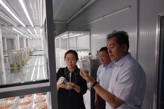 在長春綜合農(nóng)業(yè)試驗(yàn)站,站長冷建田介紹了臺(tái)站的基本情況,詳細(xì)匯報(bào)了試驗(yàn)站圍繞“黑土糧倉”科技會(huì)戰(zhàn)開展的4種模式、9項(xiàng)技術(shù)科技成果展示情況;在種質(zhì)資源樓,調(diào)研了高通量植物表型組平臺(tái)與分子設(shè)計(jì)育種工作;在研究所展館,聽取了研究所歷史沿革、學(xué)科布局、承擔(dān)任務(wù)、科技平臺(tái)、人才隊(duì)伍、黨建工作及發(fā)展規(guī)劃等情況的介紹。