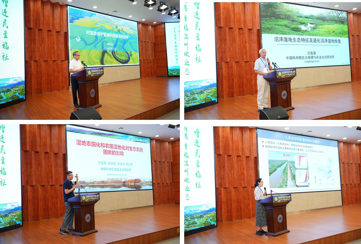2024年8月16日至18日,“中國濕地論壇(第八屆)暨中國生態(tài)學(xué)學(xué)會濕地生態(tài)專業(yè)委員會2024年年會”在浙江溫州大學(xué)成功召開。本次大會由中國生態(tài)學(xué)學(xué)會濕地生態(tài)專業(yè)委員會、國家濕地研究中心、溫州大學(xué)主辦,溫州大學(xué)生命與環(huán)境科學(xué)學(xué)院、中國科學(xué)院東北地理與農(nóng)業(yè)生態(tài)研究所(后稱“東北地理所”)、國際濕地研究聯(lián)盟、國際濕地科學(xué)家協(xié)會中國分會等協(xié)辦。中國生態(tài)學(xué)學(xué)會濕地生態(tài)專業(yè)委員會主任、東北地理所所長姜明研究員,國家林業(yè)和草原局原一級巡視員、教授級高級工程師鮑達明,中國生態(tài)學(xué)學(xué)會副秘書長岳躍民研究員,溫州大學(xué)校長趙敏教授,東北地理所呂憲國研究員,中國科學(xué)院長春分院副院長、中國生態(tài)學(xué)會濕地生態(tài)專業(yè)委員會副主任、秘書長武海濤研究員,中國科學(xué)院植物研究所副所長馮曉娟研究員,中國科學(xué)院煙臺海岸帶研究所副所長韓廣軒研究員,東北師范大學(xué)地理科學(xué)學(xué)院院長白娥教授,中國科學(xué)院南京土壤研究所丁維新研究員,華東師范大學(xué)李秀珍研究員,天津大學(xué)李思亮教授,中國科學(xué)院南京地理與湖泊研究所段洪濤研究員等濕地領(lǐng)域?qū)<摇W(xué)者及研究生參加了本次盛會。本次大會共有來自60余家科研單位和高校的400余人參加會議。