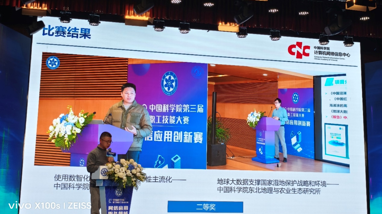 2024年11月27日,中國(guó)科學(xué)院第三屆職工技能大賽網(wǎng)信應(yīng)用服務(wù)領(lǐng)域賽在計(jì)算機(jī)網(wǎng)絡(luò)信息中心落下帷幕。東北地理所申報(bào)的《地球大數(shù)據(jù)支撐國(guó)家濕地保護(hù)戰(zhàn)略和環(huán)境外交》項(xiàng)目,經(jīng)過(guò)初賽和決賽的激烈比拼,榮獲網(wǎng)信應(yīng)用服務(wù)領(lǐng)域網(wǎng)信應(yīng)用創(chuàng)新賽二等獎(jiǎng)。
