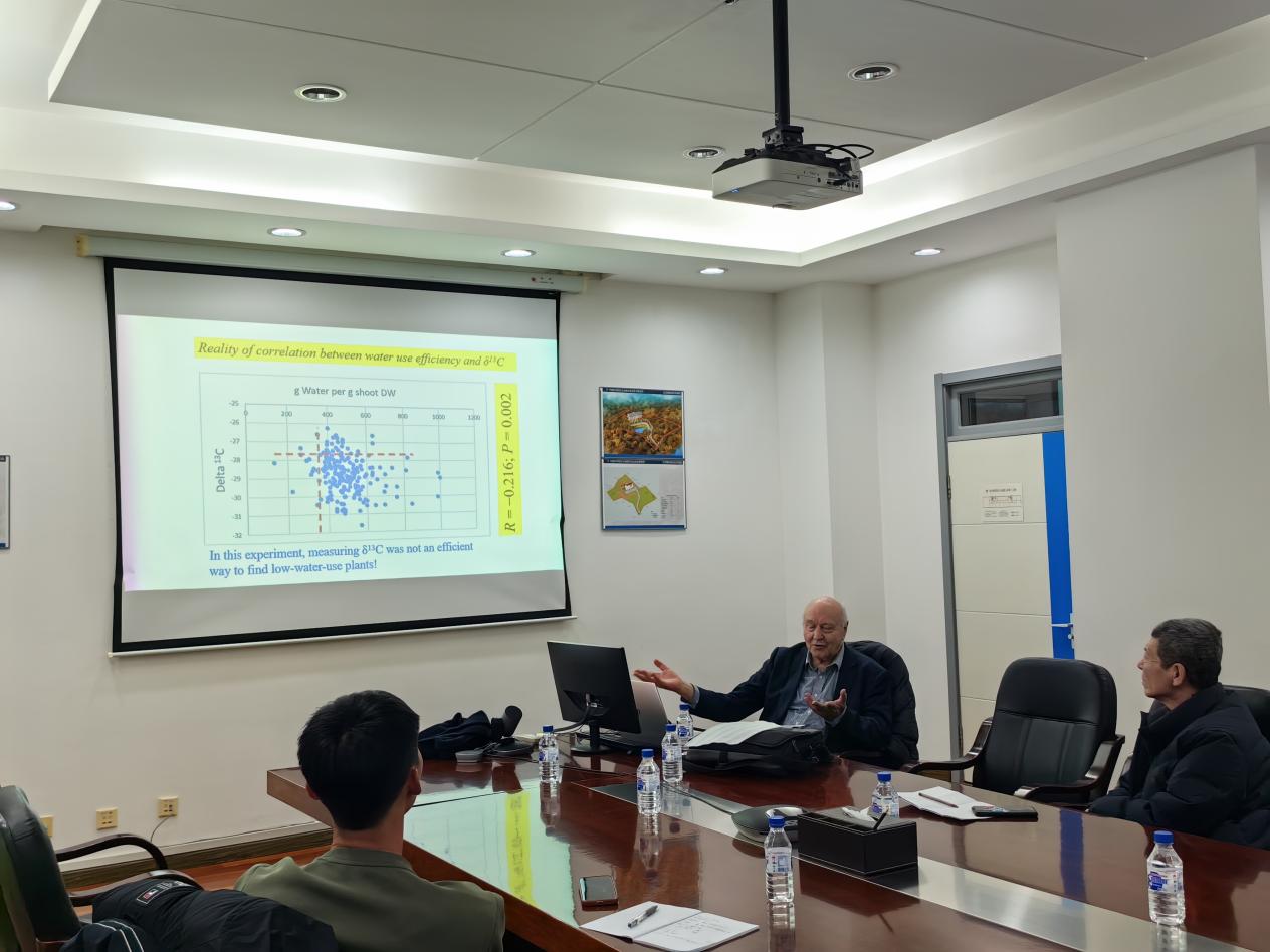 報告會上,Cory Matthew教授分別從植物分蘗大小和密度之間的補償、種子頭為下一季嫩芽提供營養(yǎng)、植物分蘗形態(tài)影響根系生長季節(jié)性、植物耐旱性等四個方面介紹了他的研究成果和最新的科研進展。報告結束后,Cory Matthew教授與參會師生進行了深入的互動交流,會場氣氛熱烈。報告激發(fā)了大家的科研興趣,開拓了科研視野,與會師生獲益匪淺。