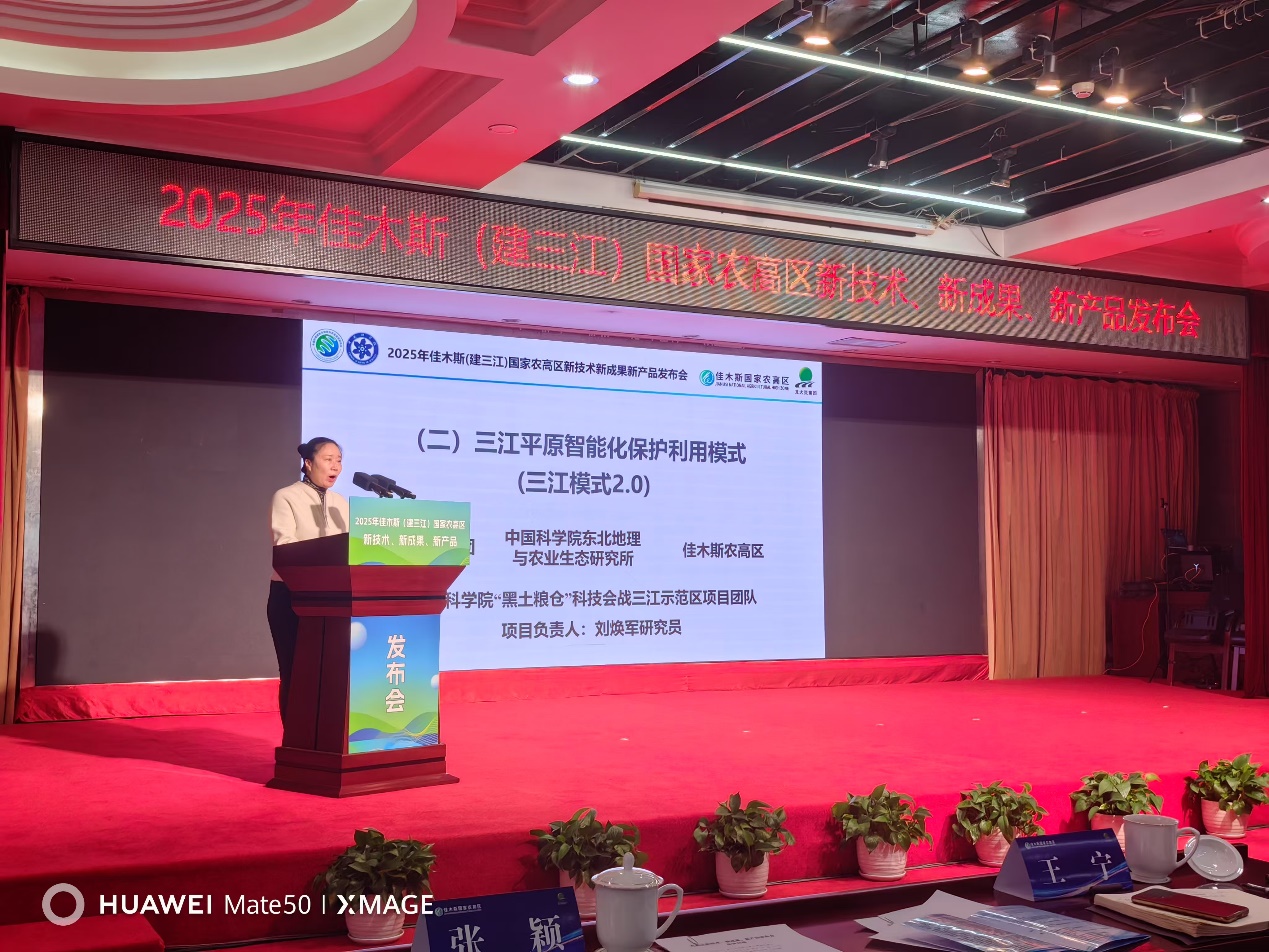 2025年1月10日,2025年佳木斯國家農(nóng)高區(qū)新技術(shù)、新成果、新產(chǎn)品發(fā)布會在建三江米都大廈成功舉辦。發(fā)布會上,三江示范區(qū)發(fā)布三江平原智能化保護(hù)利用模式(三江模式2.0)、全場景智能施肥技術(shù)體系、“海綿農(nóng)田”黑土地保護(hù)系統(tǒng)解決方案、北大荒“地塊畫像”數(shù)據(jù)集等6項(xiàng)技術(shù)。中國科學(xué)院東北地理與農(nóng)業(yè)生態(tài)研究所重大項(xiàng)目辦公室李鶴副主任和三江示范區(qū)技術(shù)負(fù)責(zé)人王洋研究員參加了此次成果發(fā)布。