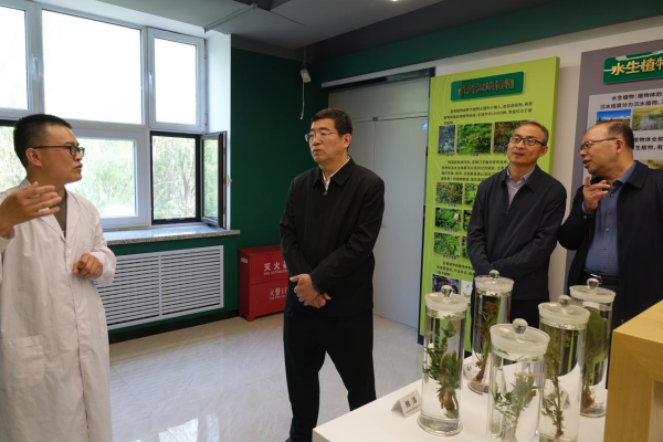 馬延峰首先來到農(nóng)業(yè)樓鹽堿地農(nóng)業(yè)研究中心,楊帆高級(jí)工程師系統(tǒng)介紹了蘇打鹽堿地治理關(guān)鍵技術(shù)、土壤改良劑研發(fā)與利用、耐鹽堿水稻、大豆、羊草等作物品種選育及鹽堿地生態(tài)修復(fù)工程實(shí)施等工作情況和科研進(jìn)展。