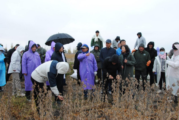 在秋日的連綿細雨中,現場測產和觀摩活動同步進行。由吉林大學植物科學學院院長都興林教授等25位吉、黑、遼及內蒙地區的領域內知名專家組成了五個測產專家組,分別對驗證區內降堿沃土共性技術與個性技術、耐鹽堿作物品種篩選與配套栽培技術,現用模式集成驗證等試驗進行現場測產,測產作物包括玉米、大豆、高粱等。