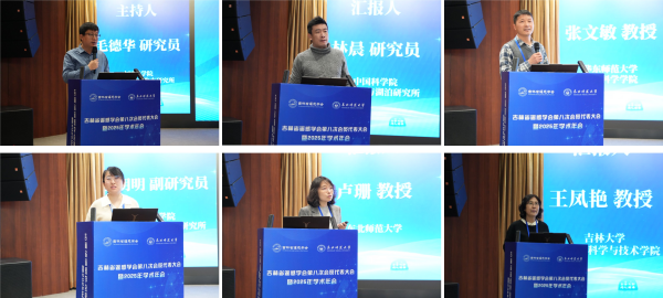 本次年會特邀六位省內(nèi)外知名學(xué)者做了大會主旨報告。東北師范大學(xué)盧珊教授主持上半場報告,南京大學(xué)國際地球系統(tǒng)科學(xué)研究所張永光教授、中國科學(xué)院南京地理與湖泊研究所林晨研究員、華東師范大學(xué)張文敏教授分別圍繞全球植被遙感、小微水體遙感及森林生態(tài)系統(tǒng)監(jiān)測等前沿方向展開分享。中國科學(xué)院東北地理所毛德華研究員主持下半場報告,中國科學(xué)院東北地理與農(nóng)業(yè)生態(tài)研究所賈明明副研究員、吉林大學(xué)王鳳艷教授、東北師范大學(xué)盧珊教授分享了團隊在濱海濕地遙感、地質(zhì)災(zāi)害智能監(jiān)測、植被遙感模型等方面的研究成果。