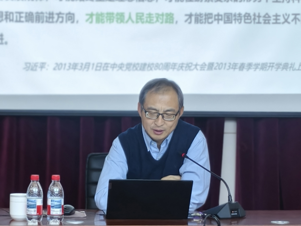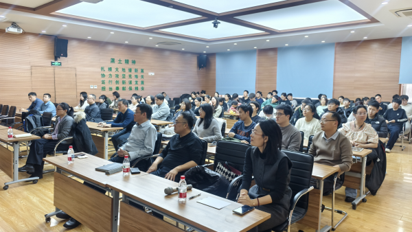 王宗明以《好好學(xué)習(xí)提升馬克思主義理論素養(yǎng)》為題,從為什么只有馬克思主義才能救中國、為什么要學(xué)習(xí)馬克思主義入手,重點(diǎn)闡述了毛澤東思想的形成背景與形成過程、主要內(nèi)容、活的靈魂、歷史地位與影響等,引導(dǎo)廣大師生牢記習(xí)近平總書記的囑托,守好崗位,做好本職工作,為實現(xiàn)第二個百年奮斗目標(biāo)、實現(xiàn)中華民族偉大復(fù)興作出自己應(yīng)有的貢獻(xiàn)。王宗明結(jié)合自身深厚的理論知識,引用大量生動的歷史資料和經(jīng)典文獻(xiàn),深入淺出地闡述專題內(nèi)容。特別是在講課的過程中,他運(yùn)用人工智能大模型及科研項目列表等研究方法,分析當(dāng)前科技工作者、研究生應(yīng)如何抓住主要矛盾,明確奮斗方向。報告視角新穎,引人入勝。課堂上,王宗明時刻關(guān)注與師生的交流互動,引導(dǎo)大家結(jié)合所學(xué)進(jìn)行思考,課堂氣氛嚴(yán)肅活潑,不時響起熱烈掌聲。