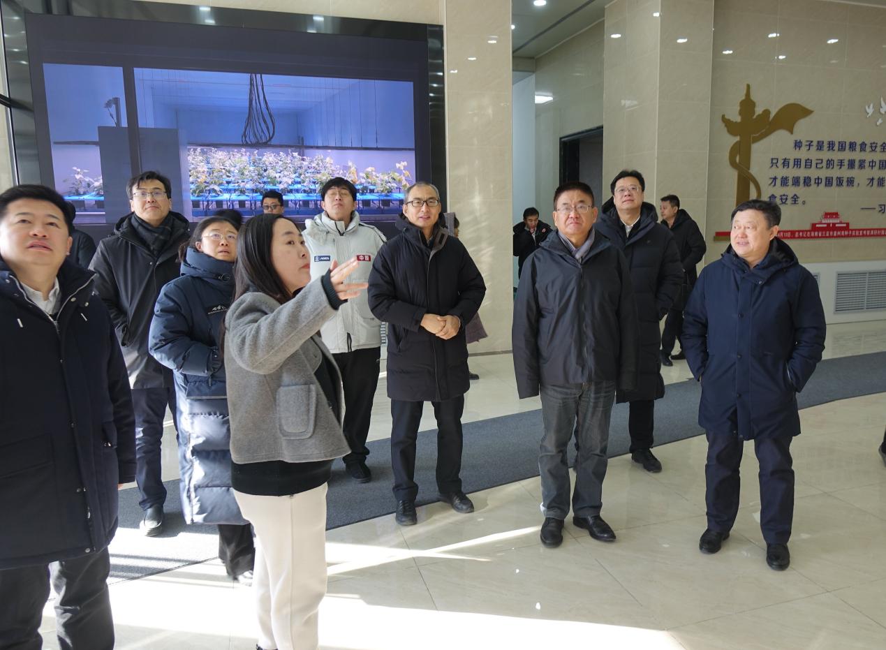 在東北亞種質資源研究中心,于慧副研究員詳細匯報了大豆分子設計育種體系、高通量作物表型組平臺等工作進展情況,冷建田高級工程師介紹了“東生”系列大豆新品種的研發成果及推廣應用情況,并匯報了東生大豆在山東省種植成效。