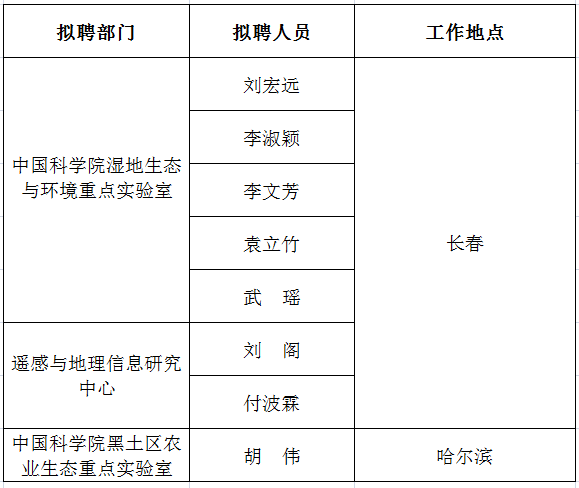 依據(jù)東北地理所公開招聘程序,在公開申報(bào)、資格審查、競聘答辯、設(shè)崗招聘委員會(huì)考察評(píng)議與建議的基礎(chǔ)上,經(jīng)所領(lǐng)導(dǎo)班子集體研究決定,擬聘任劉宏遠(yuǎn)等8名同志來所工作,現(xiàn)將各崗位的擬聘人選予以公示: