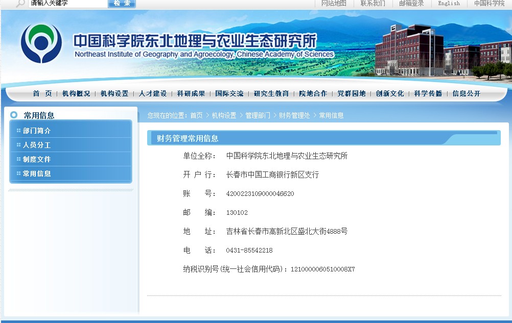 根據國家稅務總局《關于實施“三證合一、一照一碼”登記制度的公告》要求,財務管理處于2017年8月中下旬,到主管稅務機關完成了三證合一的辦理事宜,從即日起,我東北地理所納稅識別號與“統一社會信用代碼”合一: 1210000060510008X7,原納稅識別號不再使用,所內人員因支付資金而接收稅務發票時,須注明我所新的納稅識別號。