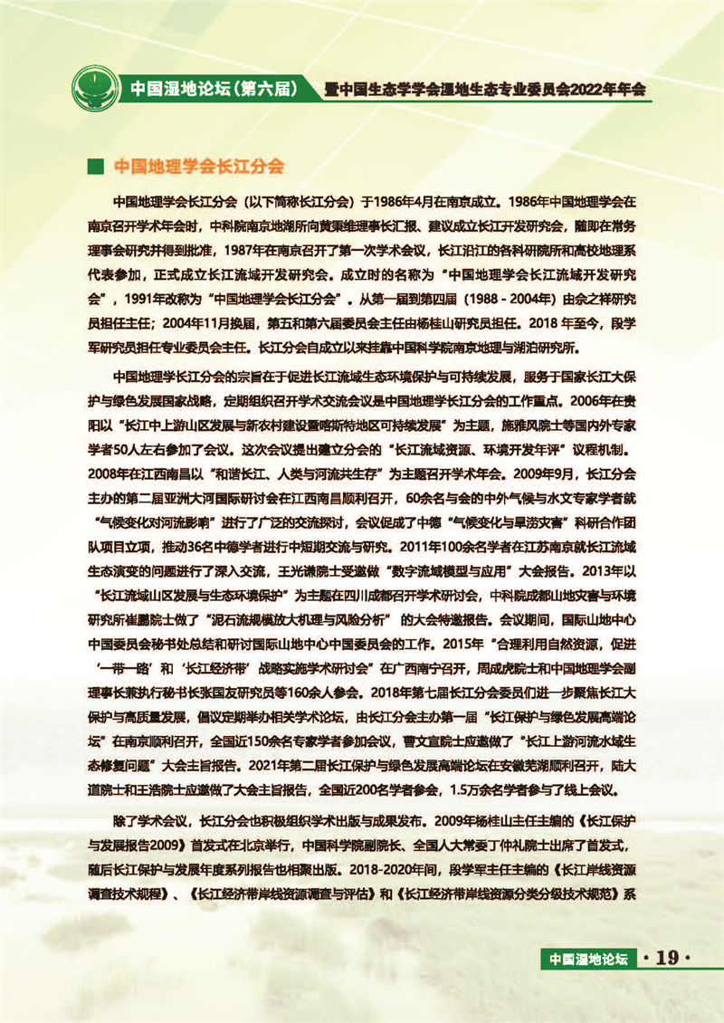 中國濕地論壇(第六屆)暨中國生態學學會濕地生態專業委員會2022年年會 會議手冊