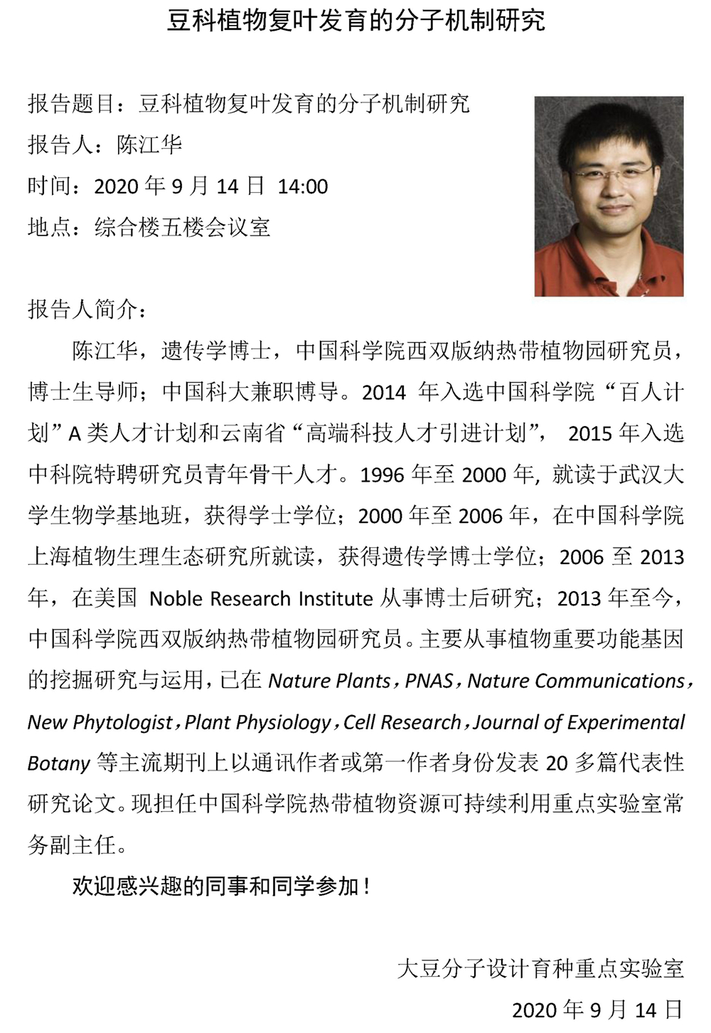 豆科植物復(fù)葉發(fā)育的分子機制研究-陳江華 研究員